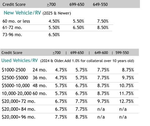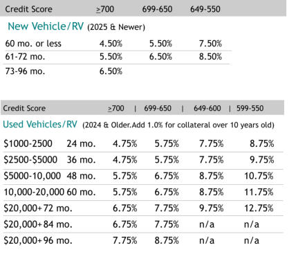 Used Vehicles/RV (2024 & Older.Add 1.0% for collateral over 10 years old)